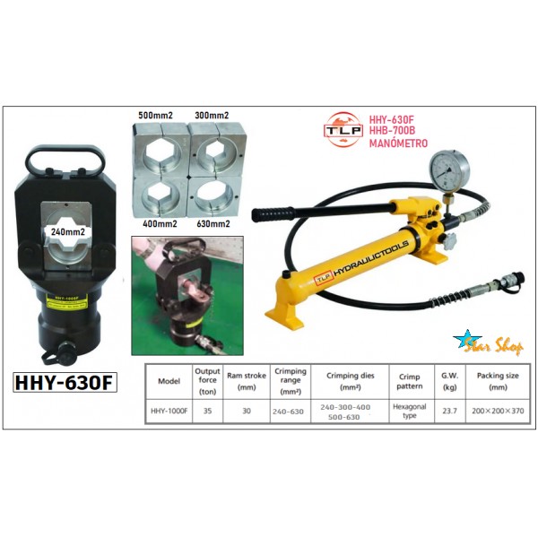 APRIETA TERMINALES HIDRÁULICO HHY-630F, 240-630mm2, BOMBA MANÓMETRO, EQUIPO INDUSTRIAL